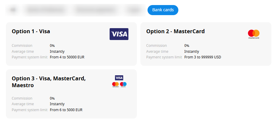 Choose the “Bank cards” option, and click on the one you prefer: