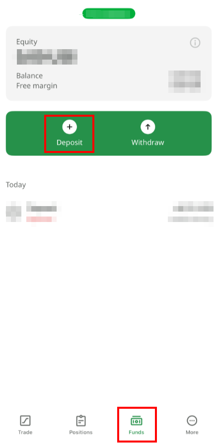 Click on "Funds" in the bottom menu and choose "Deposit":