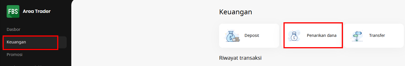 Anda bisa menarik dana dari akun Anda melalui Area Trader atau aplikasi FBS.