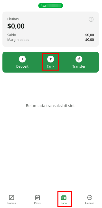 1. Buka tab "Dana" dan pilih "Tarik" seperti yang ditampilkan: