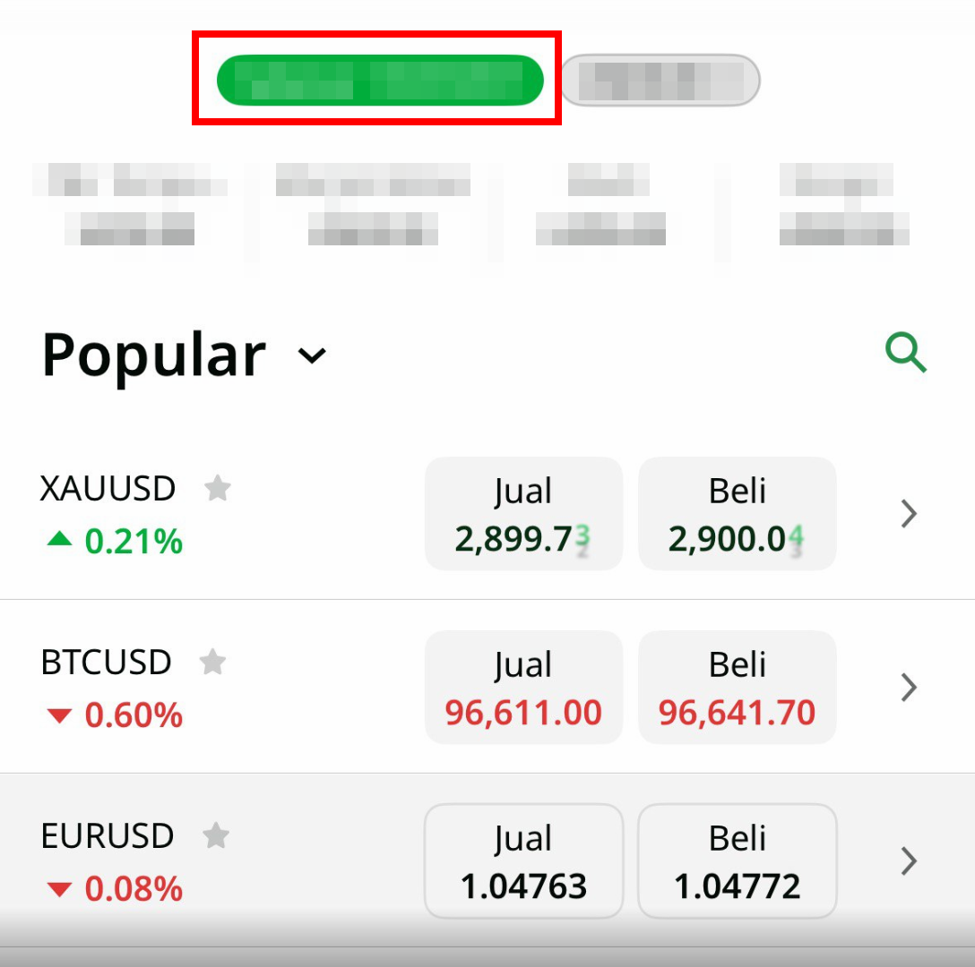 Klik pada nombor akaun anda di bahagian atas aplikasi anda: