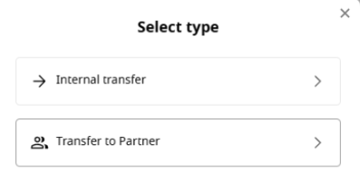 ในหน้าต่างป๊อปอัป ให้เลือก "โอนเงินไปยังพาร์ตเนอร์":